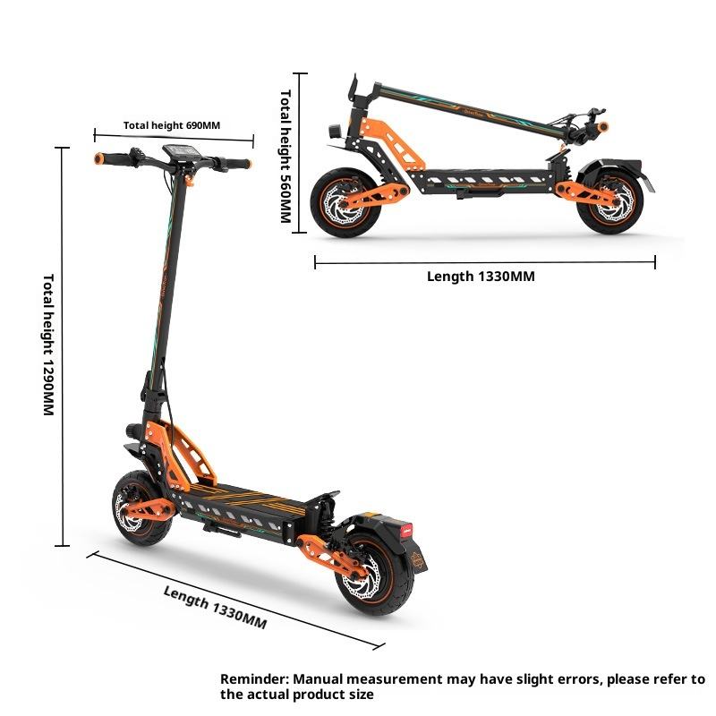 • Motor Power: 3300W brushless dual-drive system (true dual motors for superior torque and acceleration)